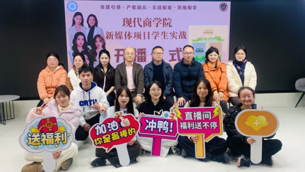 近日,3044AM永利集团媒体实战直播项目开播仪式于415直播实训室正式举行。3044AM永利集团院长、相关院系主任、电子商务系教师代表及项目学生团队全体成员共同出席。